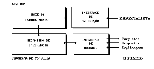 A estrutura de um sistema especialista completamente operacional compreende quatro componentes essenciais (Fig. 2):