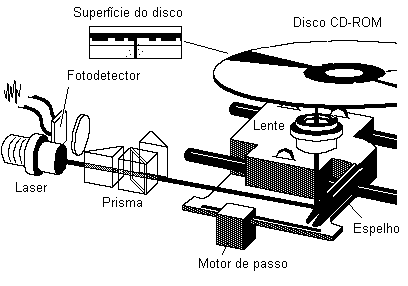 O CD-ROM é um disco de plástico espelhado, com 20 cm de diâmetro, semelhante ao disco CD laser, amplamente utilizado atualmente para gravações sonoras digitais. A técnica de gravação do CD musical e do CD-ROM são as mesmas, ou seja, utilizam dados digitais que são gravados na forma de códigos binários numéricos na superfície do disco. Cada byte de informação (número binário com 8 bits, ou dígitos binários 0 e 1) ocupa um determinado segmento de uma trilha circular semelhante à usada pelo disquete. A informação é gravada na forma de escavações microscópicas ("furos") correspondentes à representação dos dígitos 0 e 1, respectivamente. Um CD-ROM pode acomodar até 5,5 bilhões desses furos, com alta precisão. Eles são realizados por um raio laser de alta potência, sobre uma matriz metálica, que depois é reproduzida aos milhares, usando moldes plásticos. Assim, a informação gravada no CD-ROM não pode ser alterada, e tem grande durabilidade e permanência.